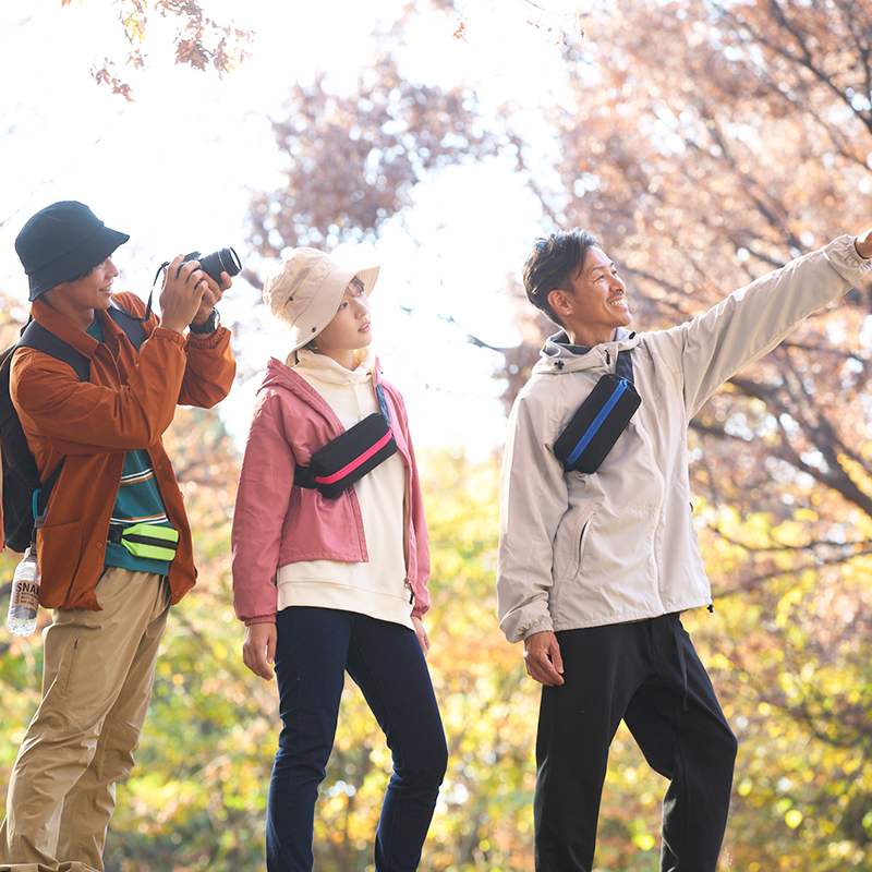 腰回りに巻き付けるだけでなく、肩から斜めがけするメッセンジャーバッグとしても使える大きめサイズ。