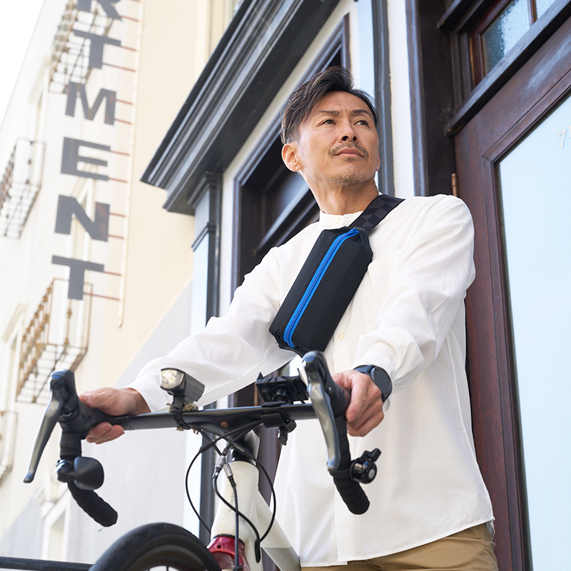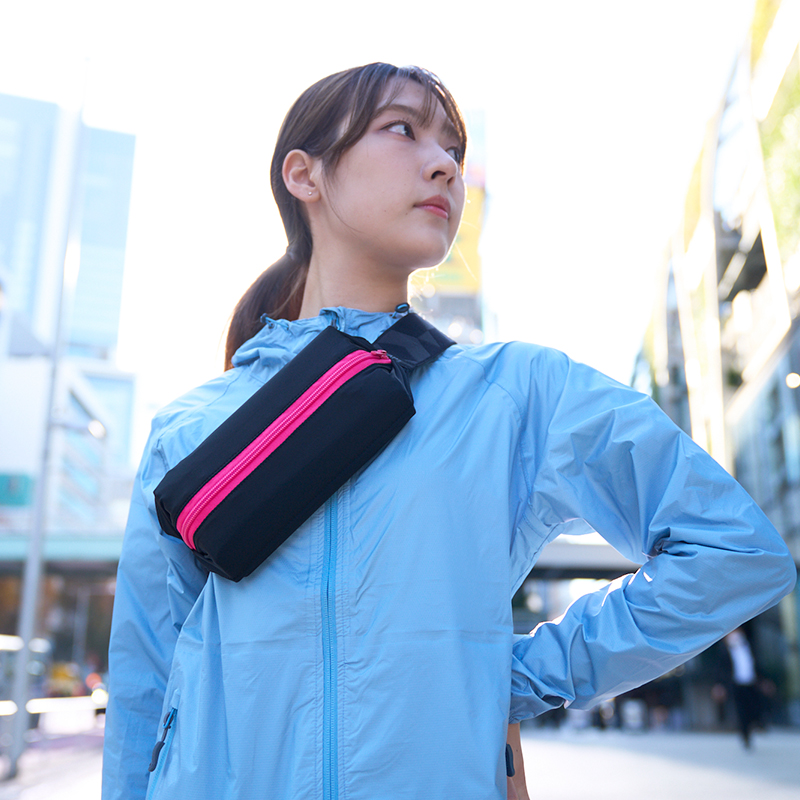 腰回りに巻き付けるだけでなく、肩から斜めがけするメッセンジャーバッグとしても使える大きめサイズ。